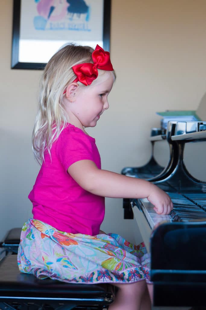 - Make some sounds on the piano. Be sure to help them keep their balance when playing the high and low notes in the way that I did on the video of Zora’s lesson below.